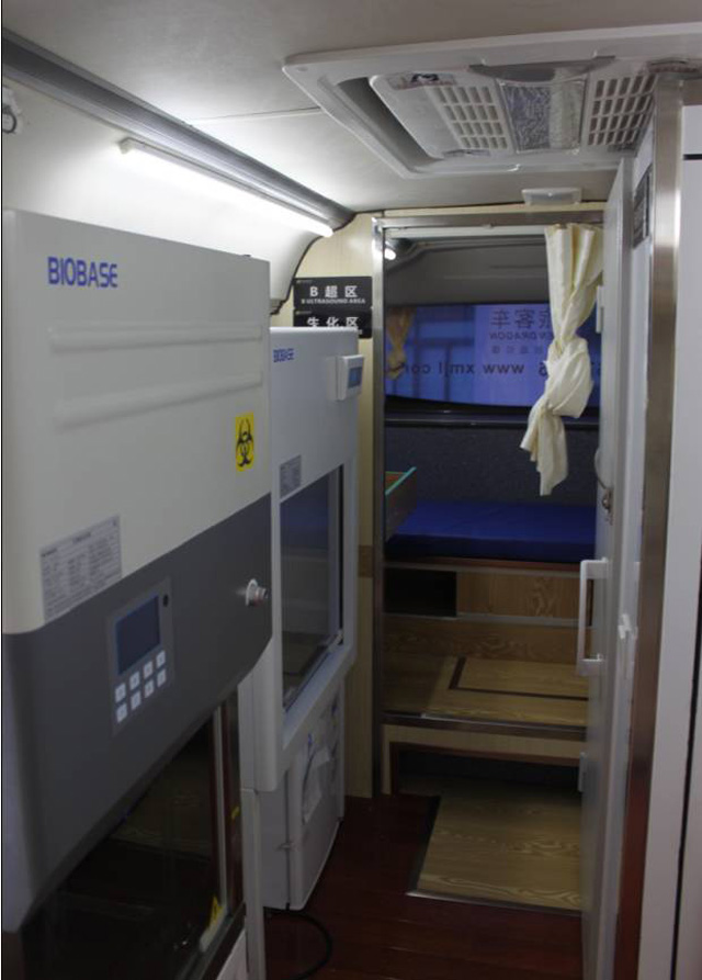 在正規(guī)的體檢醫(yī)療車上,同時配備有心電圖檢查儀、檢查床、冰柜、空調(diào)和紫外線消毒燈等一系列正常體檢和急救所需的所有設(shè)備。因?yàn)槠淞鲃有詮?qiáng),在下鄉(xiāng)醫(yī)療活動中起到了很關(guān)鍵的作用,對于某些經(jīng)濟(jì)不發(fā)達(dá)的地區(qū),醫(yī)療條件較差,相關(guān)衛(wèi)生部門可以組織免費(fèi)體檢一類的活動,大大方便了那些沒有錢進(jìn)行定期體檢的人。車上有B超檢測器、胸透等儀器,孕婦也能做些保險性的檢查。體檢醫(yī)療車分為幾種,分別為全科體檢車、婦女健康管理車和DR體檢車。比較而言,前者是一把抓,中間一個是分特定對象的,而最后的是搭配有DR設(shè)備的體檢車。