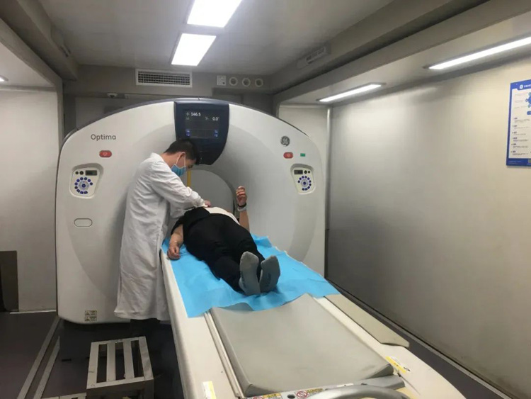 胸部CT檢查對(duì)于危重癥的鑒別非常重要。如果血氧飽和度低到一定程度,我們的大腦中樞會(huì)感知并出現(xiàn)代償反應(yīng)。會(huì)通過增強(qiáng)呼吸運(yùn)動(dòng)增加氧氣攝入,因此會(huì)感到氣急、胸悶,老年人可能會(huì)反應(yīng)遲鈍、意識(shí)模糊。此外,嘴唇、指甲都可能出現(xiàn)紫紺。降低居民朋友交叉感染的風(fēng)險(xiǎn),提升疾病篩查的能力,緩解CT影像的資源緊缺,移動(dòng)CT車開進(jìn)社區(qū),對(duì)于部分患者,特別是有基礎(chǔ)疾病,如老年人,慢阻肺、支氣管疾病、肺癌、心衰、腎衰的患者,要特別小心,可能會(huì)出現(xiàn)危重癥,這時(shí)候上移動(dòng)CT車做個(gè)肺部CT就非常有必要。