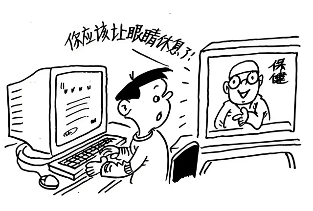 (5)不能長時(shí)間盯著電腦顯示器,適當(dāng)?shù)男菹ⅲ?小時(shí)休息10分鐘左右,不要連續(xù)使用超過4個(gè)小時(shí)。休息時(shí)候甩甩手腕,走一下路,遠(yuǎn)眺一下遠(yuǎn)方。