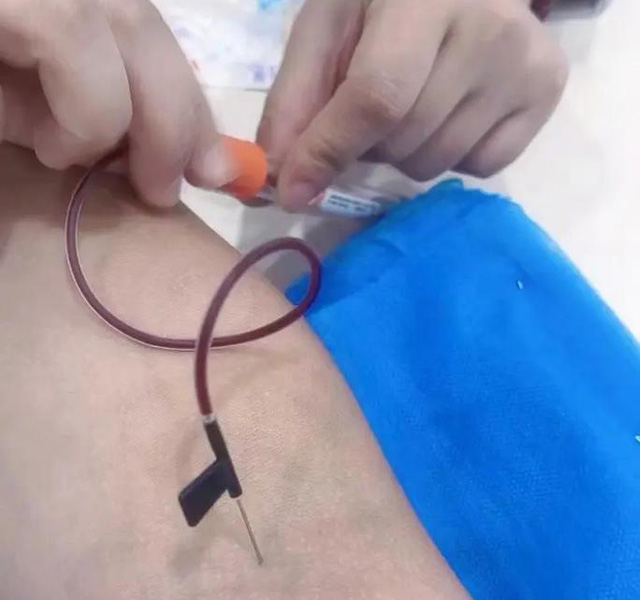 血管帶一定要扎緊,血管才會充盈。然后握拳可以看到血管。血管扁的不明顯的話就輕輕的拍一下。不需要用力的打這樣可以清晰的看到血管。血管比較細(xì)的話。扎血管的地方消毒兩次,采血針打開后。看到的兩頭都是針,針的一頭插進血管,另外一頭插到管引血液。血液抽的差不多時候就用大拇指頂著管頭。血就流不出來了。然后解開止血帶,取一根干棉簽。然后把管的針拔出來就可以了。進針角度大時候不疼但容易漏針,進針角度小時候有點疼不容易漏針。進針的角度為15度-30度不容易漏針也不疼。