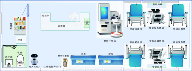 顯浩智能獻(xiàn)血屋可提供主體結(jié)構(gòu)、專(zhuān)業(yè)智能醫(yī)療設(shè)備、配套軟裝等全套解決方案,覆蓋設(shè)計(jì)、生產(chǎn)、安裝全流程作業(yè),外觀設(shè)計(jì)新穎大氣,內(nèi)部寬敞明亮,布局規(guī)范合理,環(huán)境舒適溫馨,并可根據(jù)具體個(gè)性化需求進(jìn)行調(diào)整。智能采血設(shè)備配備信息錄入體檢一體機(jī)、智能采血終端等,極大解放人力,同時(shí)方便護(hù)士操作、保證采血質(zhì)量。
