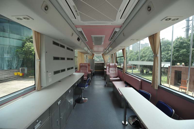 專業(yè)的流動(dòng)獻(xiàn)血車廠家會(huì)將現(xiàn)代健康體檢理念融匯于整車研發(fā)過(guò)程,看似小小的獻(xiàn)血車實(shí)際所用到醫(yī)療設(shè)備一應(yīng)俱全,大部分流動(dòng)的獻(xiàn)血車和采血車都有空調(diào)、發(fā)電機(jī)、熱合機(jī)臺(tái)、恒溫保鮮冰柜、休息床、工作臺(tái)、工作椅、工作桌、立式飲水機(jī)、烘手機(jī)、采血冰箱 30米電纜軸、配電柜、采血椅、采血臺(tái)、紫外線消毒燈、 污物桶、滅火器、排風(fēng)系統(tǒng)等。這種移動(dòng)的獻(xiàn)血車和體檢車類似,是一個(gè)移動(dòng)體檢中心可用于現(xiàn)場(chǎng)體檢和采血。