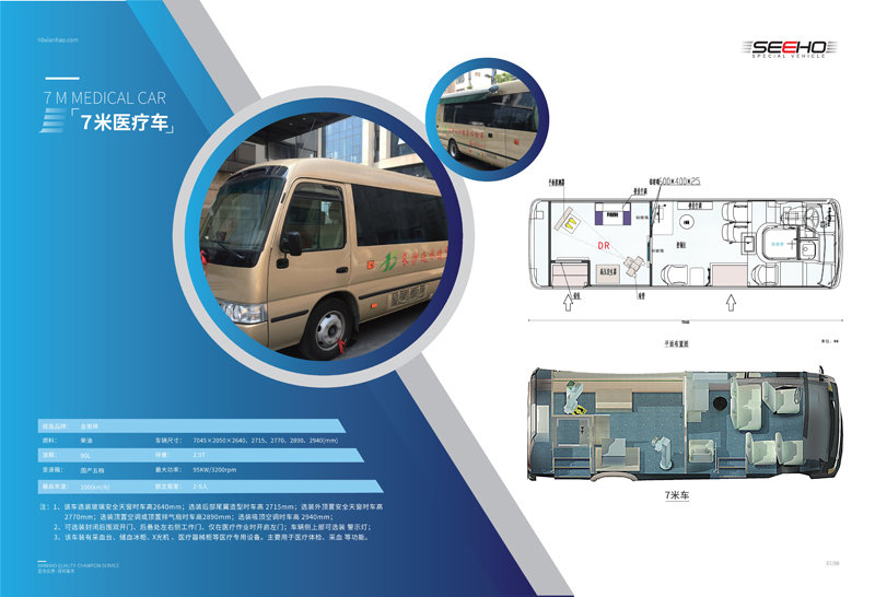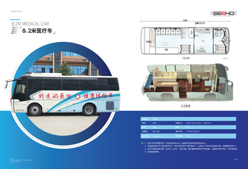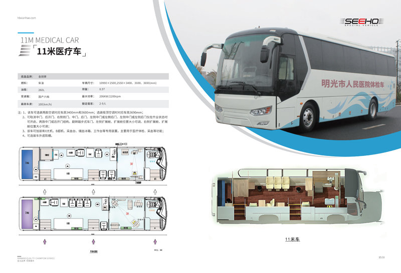 體檢車是為醫(yī)療行業(yè)設(shè)計(jì)的可以滿足常規(guī)體檢、治療、應(yīng)急醫(yī)療救援等功能的專用車輛,車內(nèi)配備專業(yè)車載X射線機(jī)、心電超聲檢查、電測聽室、全自動(dòng)生化分析儀以及檢查床、冰柜、空調(diào)和紫外線消毒燈等先進(jìn)醫(yī)療儀器設(shè)備。