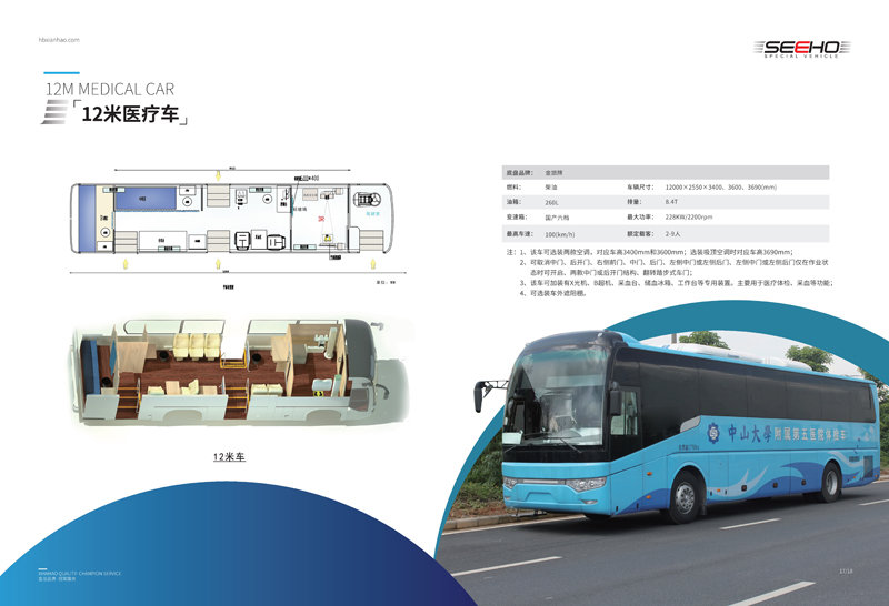 我司生產(chǎn)的職業(yè)病體檢車均選用一線品牌車(宇通、金龍、金旅); 車長有6米、7米、8.2米、9米、10.5米、11米、12米可選。